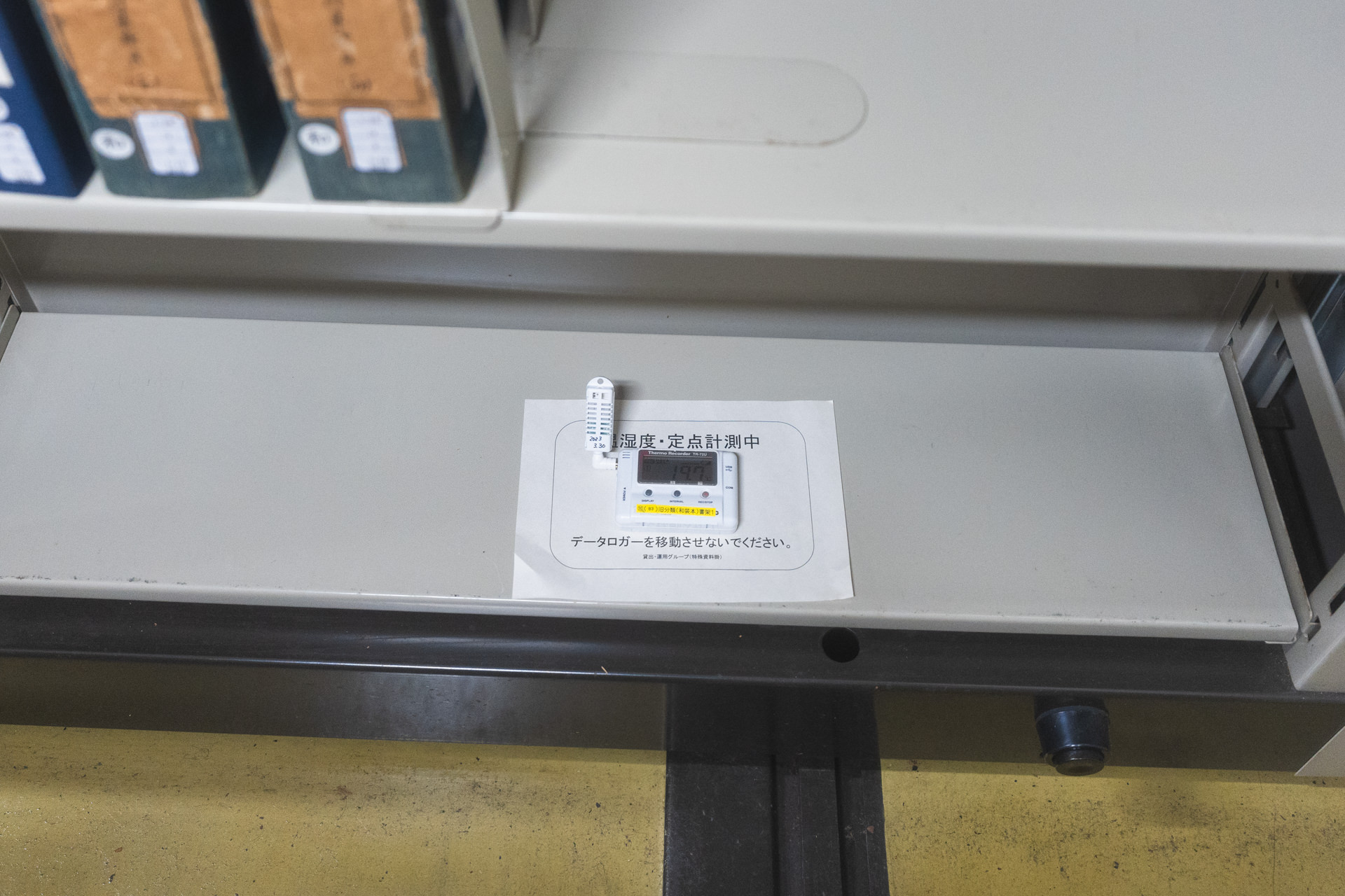 貴重書庫は構造自体が温湿度を一定に保つ設計になっていますが、一般書庫では梅雨時などに60%を超えることもあります。
