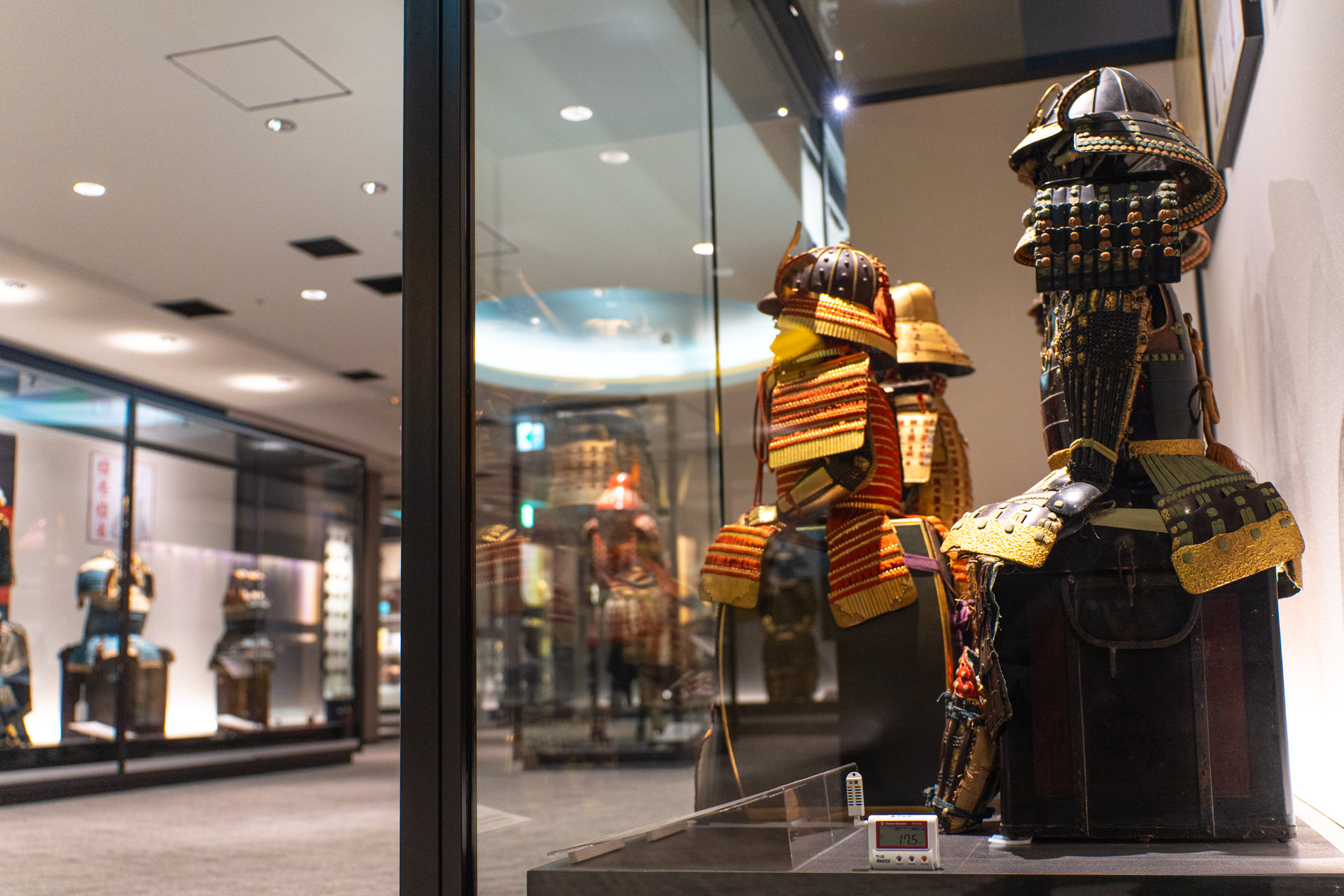 刀剣は鉄が主素材で湿度が高いと錆のリスクが高まる。一方、甲冑は鉄に加えて革・漆・布などの素材が組み合わさり、乾湿の変動で割れや剥離が起きやすい。さらに、紙資料や工芸品も素材ごとに許容範囲が異なる。そうした違いがあるからこそ、極端に振れない中庸な設定として「22℃・55%」を軸に置き、日々観測しながら調整していく考え方が採用された。その設定の確認・維持のためにおんどとりが使われている。